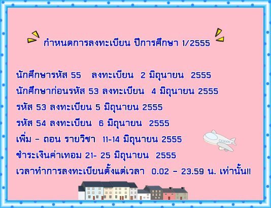 กำหนดการลงทะเบียน ปีการศึกษา 1/2555