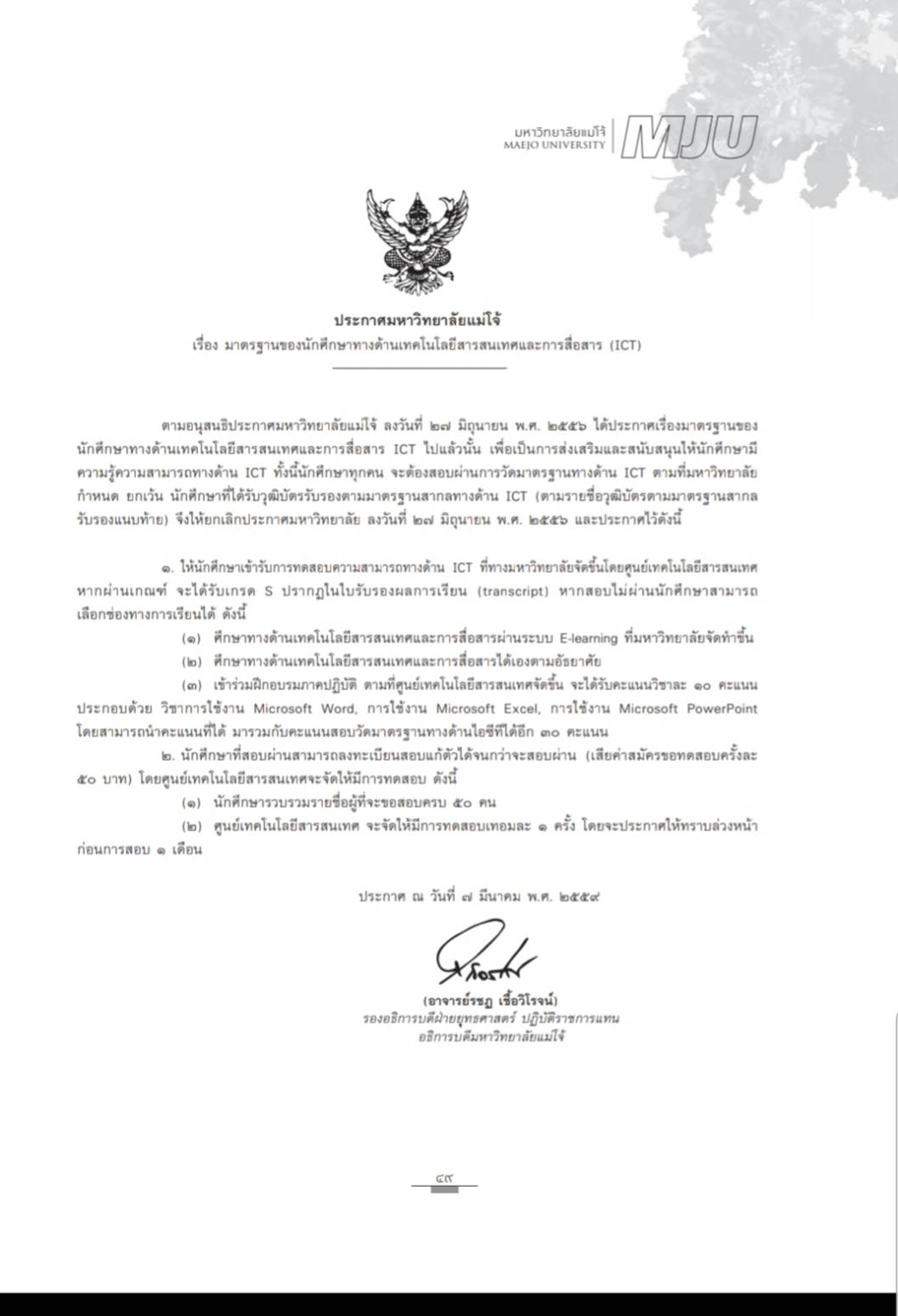 ประกาศมหาวิทยาลัย ว่าด้วยเรื่องมาตรฐาน ICT.jpg