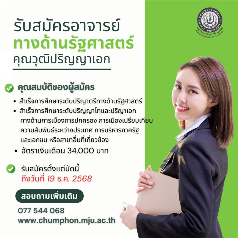 1.ตำแหน่งอาจารย์ทางด้านรัฐศาสตร์ คุณวุฒิปริญญาเอก จำนวน 1 อัตรา : https://shorturl.asia/oLXVr
