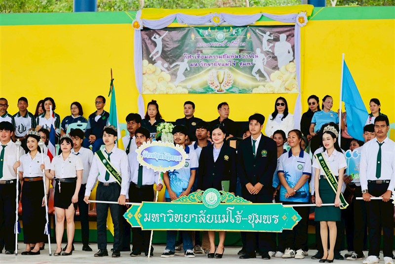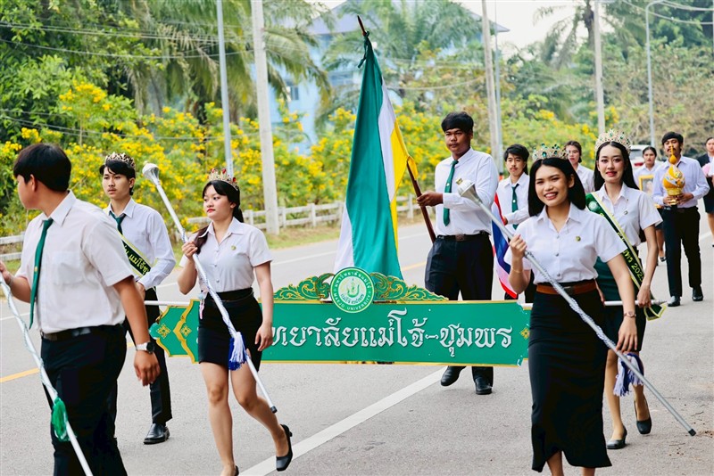 วันที่ 16 มกราคม 2569 เวลา 08.30 น. ณ สนามกีฬาอาคารอเนกประสงค์ มหาวิทยาลัยแม่โจ้-ชุมพร ดร.ศิลปชัย จันทร์มีศรี ปลัดอำเภอ หัวหน้ากลุ่มงานปกครองอำเภอละแม เป็นประธานในพิธีเปิดการแข่งขันกีฬาเชื่อมความสัมพันธ์ภายใน มหาวิทยาลัยแม่โจ้-ชุมพร (คาวบอยเกมส์ ครั้งที่ 23) “น้ำใจไมตรี สามัคคี และมิตรภาพ” นางสาวสุมลทิพย์ สุทธิรักษ์ นายกองค์การนักศึกษานักศึกษามหาวิทยาลัยแม่โจ้-ชุมพร กล่าวรายงานวัตถุประสงค์การจัดการแข่งขัน และได้รับเกียรติจากนายสุกิจ แก้วเพชร นายกองค์การบริหารส่วนตำบลละแมเข้าร่วมในพิธีเปิดด้วย โดยมีขบวนพาเหรดแต่ละสี นำนักกีฬาเข้าสู่สนาม ดังนี้