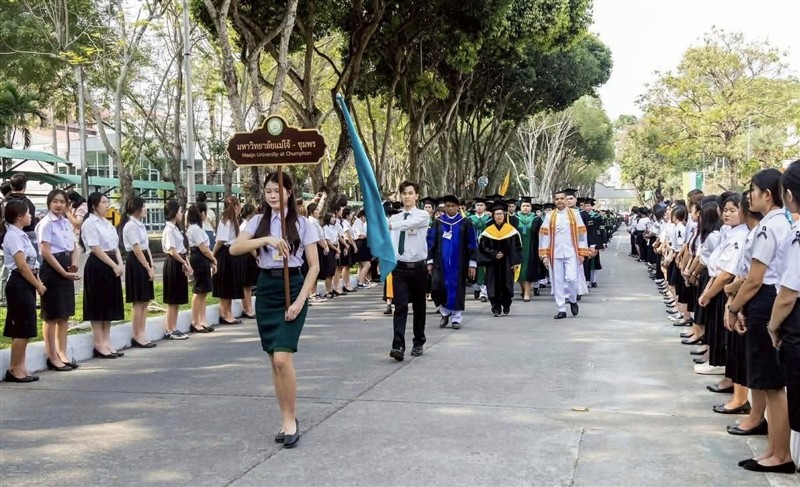 วันที่ 19 กุมภาพันธ์ 2569 มหาวิทยาลัยแม่โจ้-ชุมพร นำโดย อาจารย์ ดร.ฐิระ ทองเหลือ คณบดี พร้อมด้วย อาจารย์ ดร.จักรกฤช ณ นคร รองคณบดีฯ ฝ่ายยุทธศาสตร์ อาจารย์ ดร.ณัชพัฒน์ สุขใส อาจารย์ ดร.วีรภรณ์ โตคีรี ดร.ณรงค์ โยธิน นางสาวสายทอง สุจริยาพงศ์พร และนางสาวสุวนันท์ สุวรรณเนาท์ เข้าร่วมแสดงความยินดีกับบัณฑิต มหาบัณฑิต ดุษฎีบัณฑิต และศิษย์เก่าดีเด่นของ มหาวิทยาลัยแม่โจ้ ในพิธีพระราชทานปริญญาบัตร ครั้งที่ 48 ณ ศูนย์กีฬาเฉลิมพระเกียรติ มหาวิทยาลัยแม่โจ้ จังหวัดเชียงใหม่