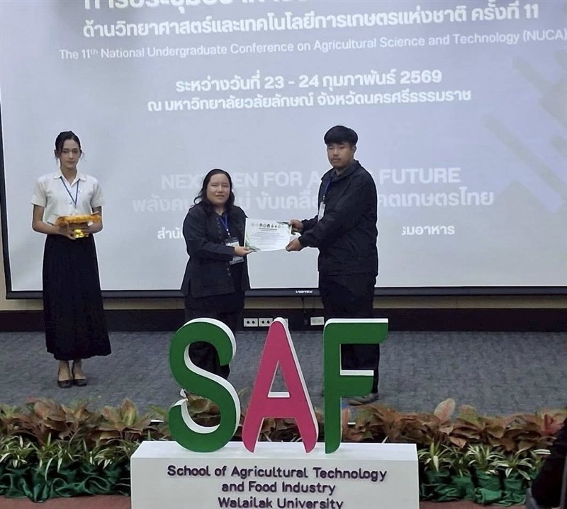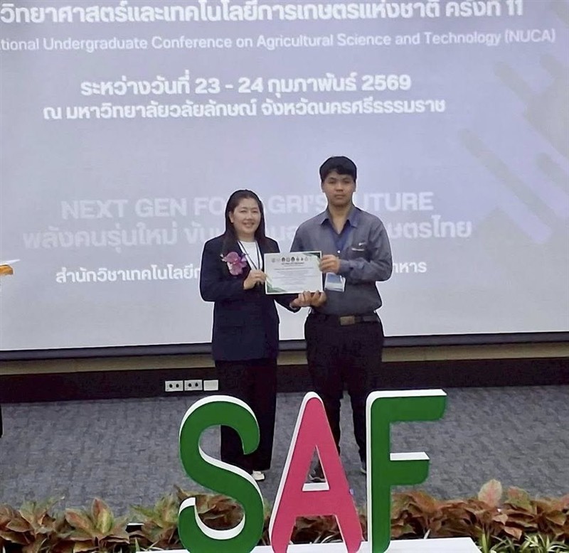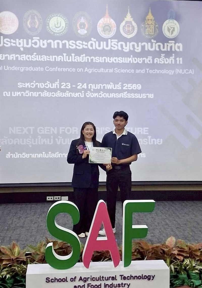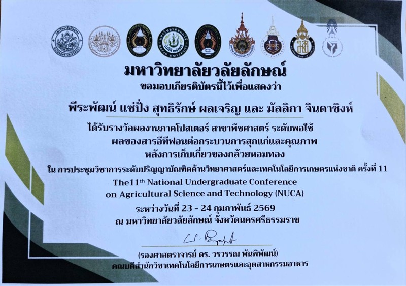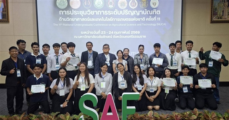 วันที่ 23–24 กุมภาพันธ์ 2569 อาจารย์วีรชัย เพชรสุทธิ์ รองคณบดีฯ ฝ่ายวิชาการวิจัยและบริการวิชาการ พร้อมด้วย อาจารย์ ดร.จิระศักดิ์ วิชาสวัสดิ์ ประธานอาจารย์หลักสูตรพืชศาสตร์ ผู้ช่วยศาสตราจารย์ ดร.สุทธิรักษ์ ผลเจริญ ผู้ช่วยศาสตราจารย์ ดร.มัลลิกา จินดาซิงห์ อาจารย์ปณิดา กันถาด อาจารย์ประจำสาขาวิชาพืชศาสตร์ ได้นำคณะนักศึกษาสาขาวิชาพืชศาสตร์ เข้าร่วมนำเสนอผลงานทางวิชาการ ภาคบรรยายและโปสเตอร์ ในงาน “การประชุมวิชาการระดับปริญญาบัณฑิตด้านวิทยาศาสตร์และเทคโนโลยีการเกษตรแห่งชาติ ครั้งที่ 11 (NUCA2026)” ระหว่างวันที่ 23–24 กุมภาพันธ์ 2569 ภายใต้แนวคิด “สร้างสรรค์งานวิจัย สู่การเปลี่ยนแปลงเกษตรไทยอย่างยั่งยืน”