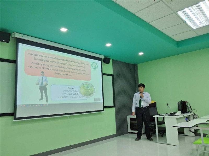- เรื่อง “การประเมินคุณภาพของเมล่อนสายพันธุ์ไข่มังกรและหยกมงคลระหว่างจังหวัด ชุมพรและขอนแก่นภายใต้สภาพภูมิอากาศที่แตกต่างกัน” โดย นายเดชนรินทร์ ศรีบุรินทร์