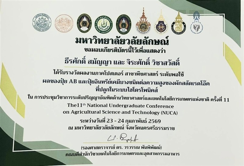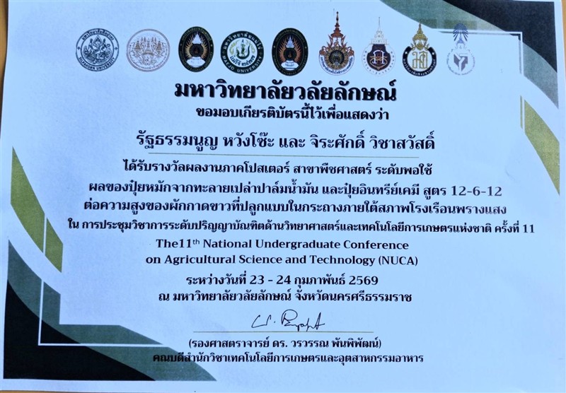 ทั้งนี้ นักศึกษาสาขาวิชาพืชศาสตร์ ได้เข้าร่วมนำเสนอผลงาน จำนวน 8 เรื่อง และสามารถคว้ารางวัลได้ถึง 6 รางวัล ดังนี้