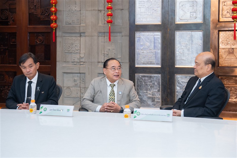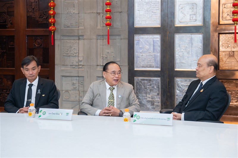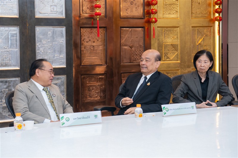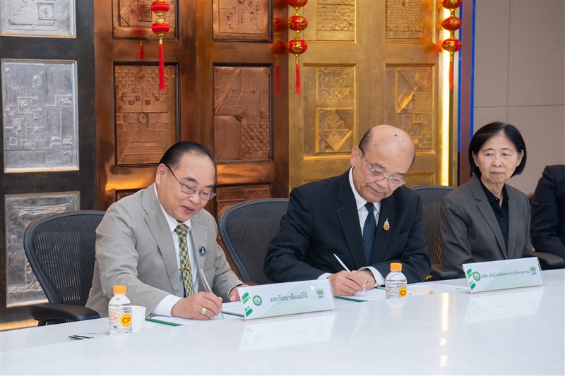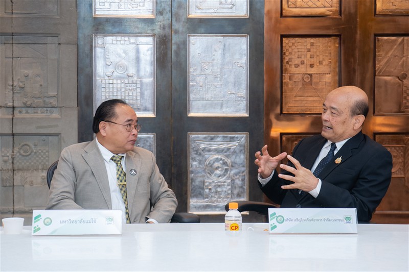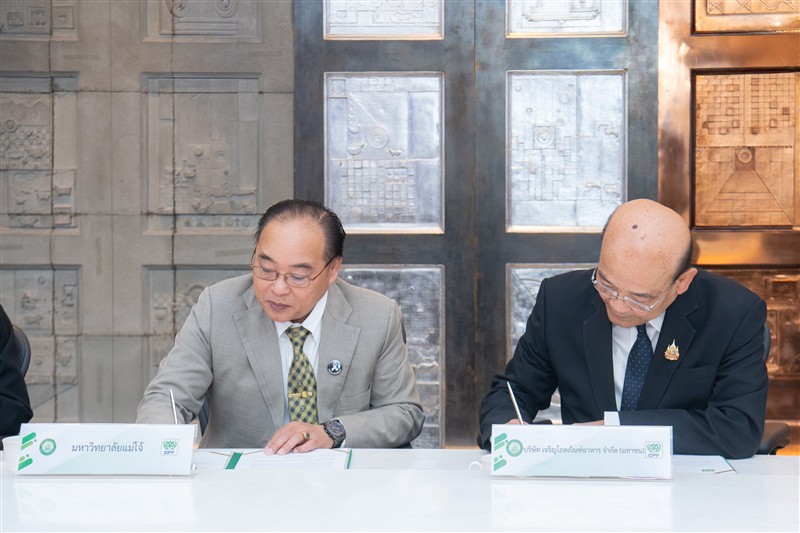 วันจันทร์ที่ 23 กุมภาพันธ์ 2569 ณ ห้องประชุม ชั้น 30 อาคารสำนักงาน ซีพี ทาวเวอร์ มหาวิทยาลัยแม่โจ้ นำโดย รองศาสตราจารย์ ดร.วีระพล ทองมา อธิการบดี ผู้ช่วยศาสตราจารย์ ดร.ประภากร ธาราฉาย รองอธิการบดี และอาจารย์ ดร.ฐิระ ทองเหลือ คณบดีมหาวิทยาลัยแม่โจ้-ชุมพร ร่วมลงนามบันทึกข้อตกลงความร่วมมือทางวิชาการกับ บริษัท เจริญโภคภัณฑ์อาหาร จำกัด (มหาชน) โดยมี น.สพ.สุจินต์ ธรรมศาสตร์ ประธานผู้บริหารฝ่ายปฏิบัติการธุรกิจสัตว์น้ำ กรรมการผู้มีอำนาจ นางสาวนันทนา ศรีรัตนกุล ผู้อำนวยการธุรกิจพันธุ์กุ้งทะเล 1 และนายจรัส สมจิตร ผู้จัดการศูนย์วิจัยและพัฒนาการเลี้ยงกุ้ง อำเภอละแม ร่วมเป็นสักขีพยานและลงนามในโครงการความร่วมมือด้านการเลี้ยงกุ้ง