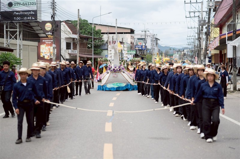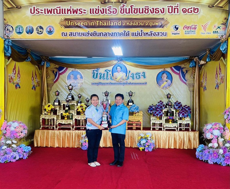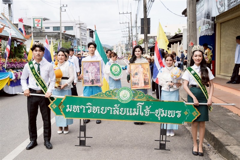 วันที่ 8 ตุลาคม 2568 งานกิจกรรมนักศึกษา มหาวิทยาลัยแม่โจ้-ชุมพร ร่วมสืบสานประเพณีแห่พระแข่งเรือขึ้นโขนชิงธง มรดกภูมิปัญญาทางวัฒนธรรมของชาติ แห่งลุ่มน้ำหลังสวน ปีที่ 182 ซึ่งเป็นงานประเพณีสำคัญของอำเภอหลังสวน จังหวัดชุมพร ที่สืบทอดกันมายาวนาน เพื่อแสดงออกถึงความศรัทธา ความสามัคคี และการอนุรักษ์วัฒนธรรมพื้นถิ่นของชาวลุ่มน้ำหลังสวน โดยมี อาจารย์นาตาลี อาร์ ใจเย็น พร้อมด้วย นายสานิตย์ แป้นเหลือ นักวิชาการศึกษา นางสาวศุจินธร รัตนิพนธ์ นักวิชาการศึกษา นายประภัย สุขอิน บรรณารักษ์ ผู้นำองค์การนักศึกษา สภานักศึกษา และนักศึกษาชั้นปีที่ 1  เข้าร่วมพิธีตักบาตรเทโว ในวันแรม 1 ค่ำ เดือน 11 และร่วมประกวดขบวนแห่เรือพระบก ซึ่งจัดขึ้นอย่างยิ่งใหญ่ ณ อำเภอหลังสวน จังหวัดชุมพร