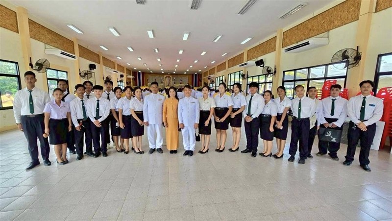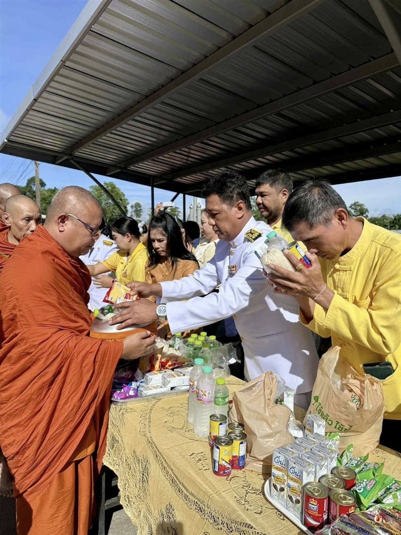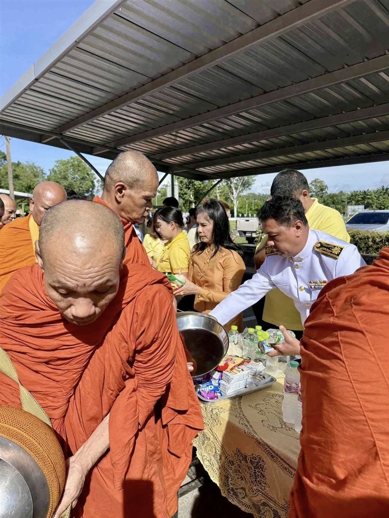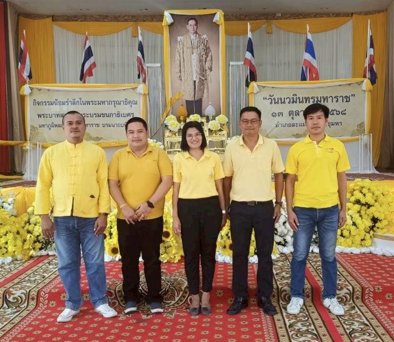 วันที่ 13 ตุลาคม 2568 เวลา 07.30 น. บริเวณลานอเนกประสงค์ หน้าอำเภอละแม จังหวัดชุมพร อาจารย์ ดร.ฐิระ ทองเหลือ คณบดี พร้อมด้วยบุคลากร นักศึกษา มหาวิทยาลัยแม่โจ้-ชุมพร หน่วยงานภาครัฐ ภาคเอกชน ประชาชนอำเภอละแม ร่วมพิธีทำบุญตักบาตรพระสงฆ์ เพื่อถวายเป็นพระราชกุศล เนื่องในวันนวมินทรมหาราช วันคล้ายวันสวรรคต พระบาทสมเด็จพระบรมชนกาธิเบศร มหาภูมิพลอดุลยเดชมหาราช บรมนาถบพิตร 13 ตุลาคม โดยประชาชนได้ร่วมใจกันแต่งกายชุดสุภาพโทนสีเหลืองมาร่วมทำบุญตักบาตร เพื่อแสดงถึงความจงรักภักดีและน้อมรำลึกในพระมหากรุณาธิคุณของพระมหากษัตริย์ผู้ทรงพระคุณอันประเสริฐโดยพร้อมเพรียงกัน